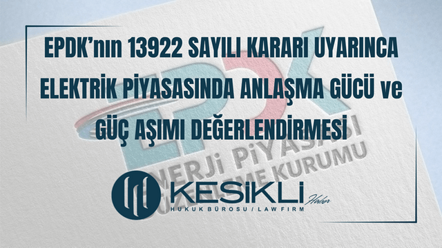 EPDK’nın 13922 Sayılı Kararı Uyarınca Elektrik Piyasasında Anlaşma Gücü ve Güç Aşımı Değerlendirmesi
